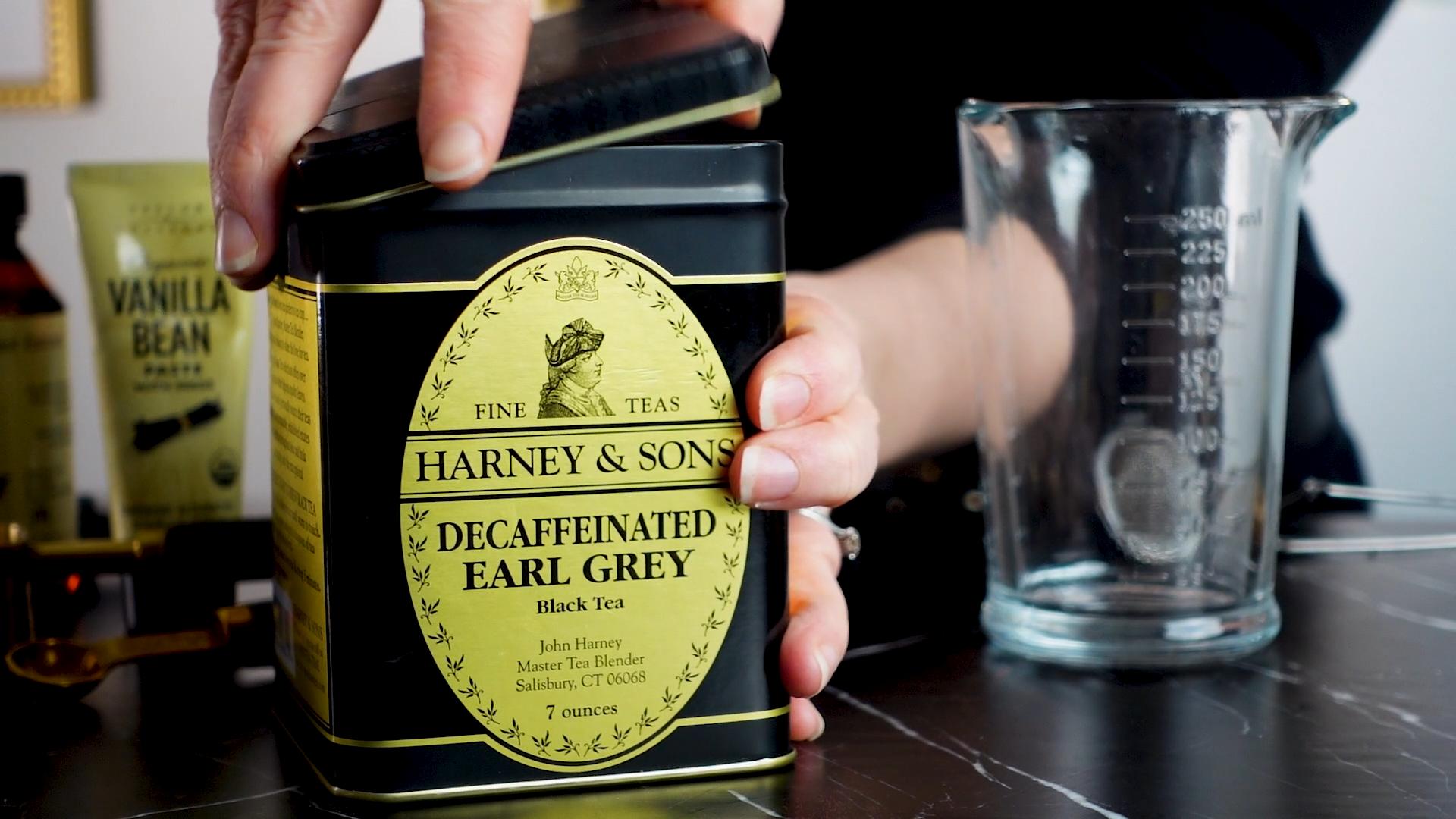 First thing I’ll have to do is make the Earl Grey syrup. I’ll steep one teaspoon of earl grey tea in 1/2 cup of hot water for 5 minutes. Once its finished steeping, I’ll remove the tea leaves and combine the tea with equal parts sugar and a 1/4 teaspoon of vanilla paste. Once the sugar has dissolved, ill let it cool to room temperature then let it chill in the refrigerator until its cold. I am honestly obsessed with Earl Grey tea, so this syrup is already seeing a ton of use at my house. The vanilla mixed in there is so delicious too.