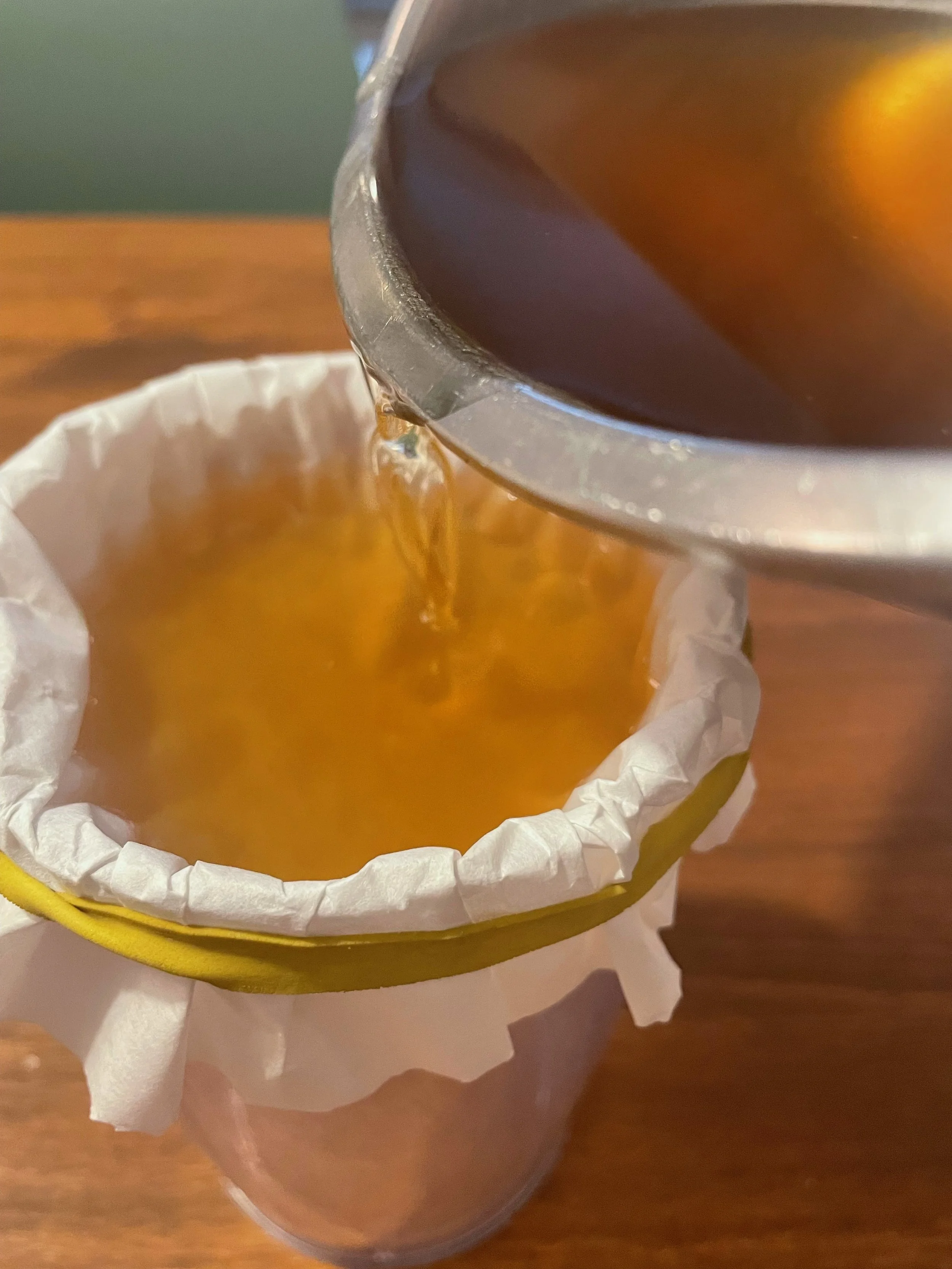 After straining out the fruit and peels, I went ahead and strained it through a coffee litter to remove any remaining sediment.